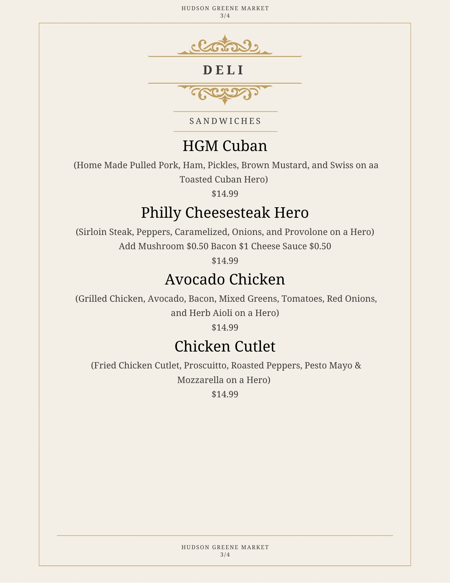 Sandwich Menu